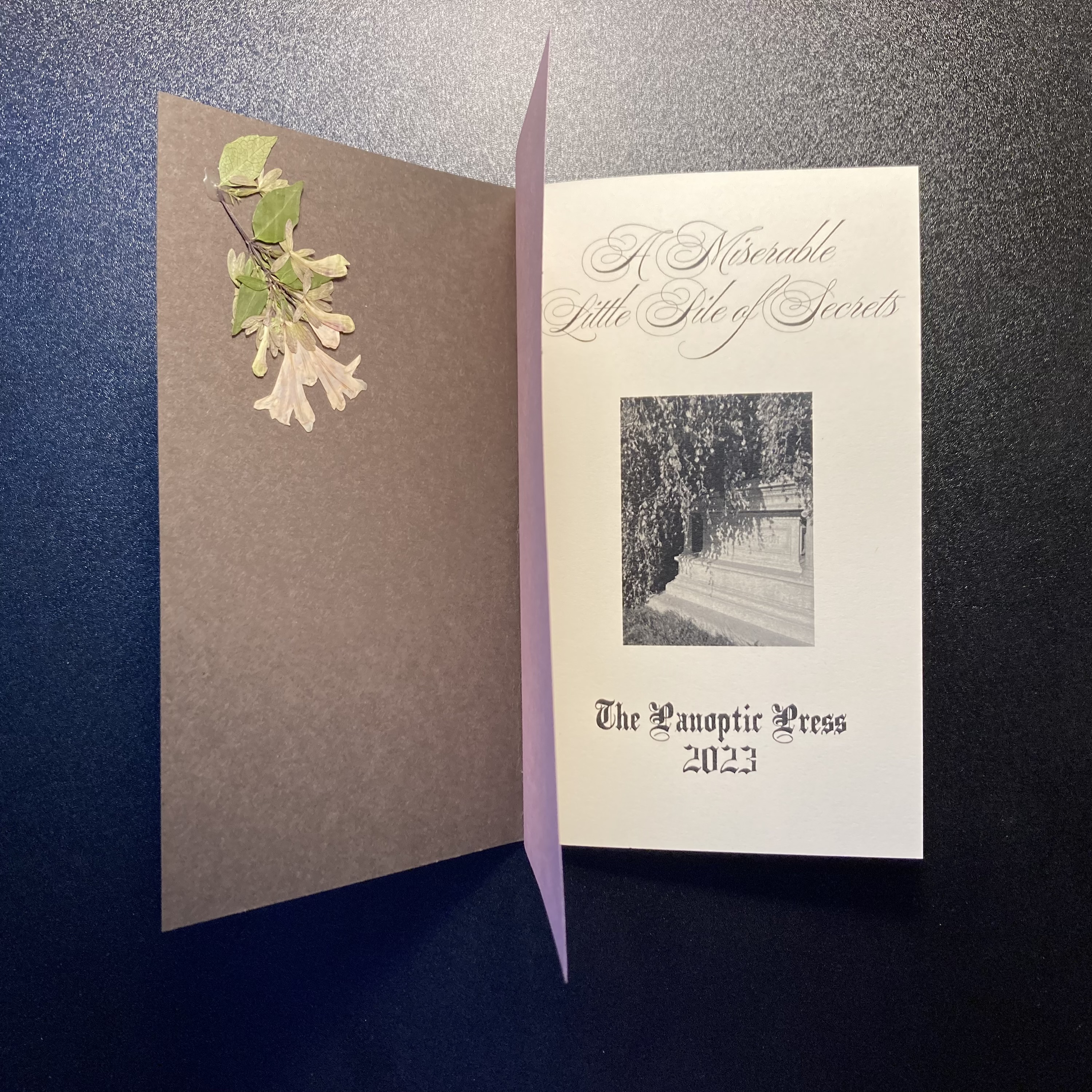 2024 Zine 16 pages, 4 x 6.5" Edition of 25 B&W with pressed flower and stenciled sleeve